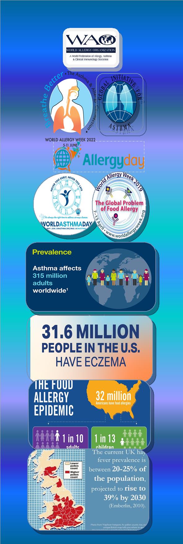Allergy diseases including eczema, asthma, hay fever, food allergies, drugs allergies etc. are increasing every year. According to WHO estimates, there are around 150m people who suffer from allergy diseases. Some severe allergy cases can be life-threating such as anaphylaxis; 25%-38% mild or seasonal allergy diseases will develop into permanent asthma. WHO estimates that around 200,000 people die of asthma each year.